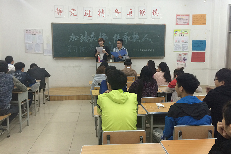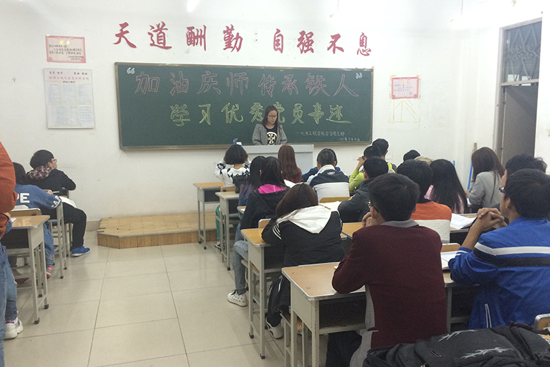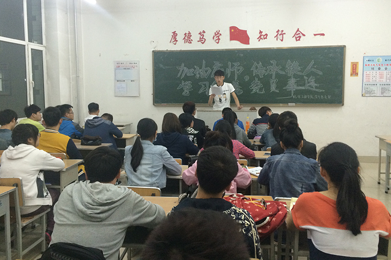 为传承优秀铁人精神,传递庆师正能量,提高新一代入党积极分子素质,加强党的思想理论建设和党员队伍建设,bevictor伟德官网员工党支部于5月4日晚18:00在主楼231开展了“加油庆师,传承铁人,学习党员优秀事迹”班会活动。本次会议由2014级各班班长组织,团支书主持,全体同学参加。
