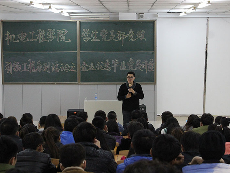 史泰隆,2010级优秀毕业生,现为第五采油厂第一油矿九区二队的采油工,毕业重回母校,他表示有很多感悟想与同学们分享。首先他从“如何读大学”、“如何过大学”、“如何做优秀党员”、“如何成为企业所需要的人才”等方面向学弟学妹们提出了:“老员工活与高中生活有何不同?”等问题,随后通过自身在大学的切实经历,为同学们进行耐心细致的分析。一方面,他通过举例,讲述自己的大学学习生活及员工会工作内容与方法,鼓励同学们多多参与活动,提高自身综合素质。他指出,想要成为一名优秀党员,应时刻对自身的行为及素养有一定的要求,主动服务于同学,愿意干活,多干活,干细活。他也通过自己的成功经历向同学们传授了很多宝贵的学习经验,例如:他曾用2个半月埋头苦学,最终通过大学英语四级考试,他的经历告诉同学们:只要在工作学习中肯付出,肯吃苦,就会有回报。另一方面,他向同学们介绍了目前企业的真实工作环境,其工作量及企业单位对员工的要求,及用人单位对毕业生基本技能的需求方向。同学们纷纷表示,真正领悟到了“机遇是留给有准备的人的”。毕业后想要找个好工作,不只是想想而已,要真正的付出行动。抓住机遇的同时也要懂得取舍,学习生活中不要急功近利,掌握好基础的专业知识。史泰隆的一番肺腑之言使同学们对自身综合能力的提高有了进一步的思考及要求。