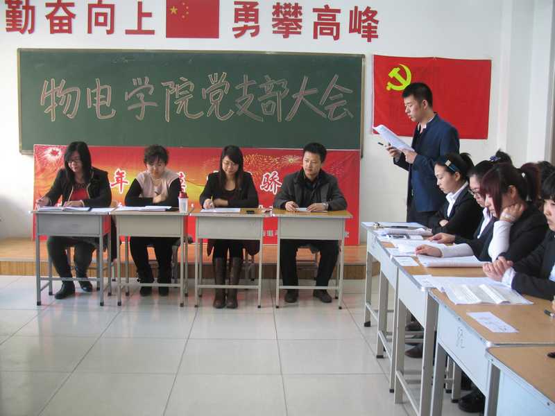 2013年4月7日中午12点,bevictor伟德官网员工党支部纳新大会在主楼232举行。大会由党支部书记邓雨巍组织,组织建设科长刘彰基、员工支部委员张宏伟、辅导员丁军荣出席会议。
