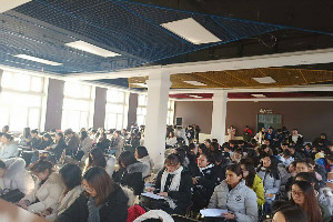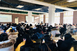 邓雨巍老师介绍了合肥万达酒店,并表达了对即将毕业大四学子的殷切期盼。招聘会上,汪总通过播放宣传片、PPT演示、面对面交流等方式向同学们介绍公司的概括、职业发展方向、人员需求、员工福利待遇等。不仅有2015级毕业生来到这次招聘会,还有许多在校的员工来学习观摩,招聘会讲座现场十分热闹。