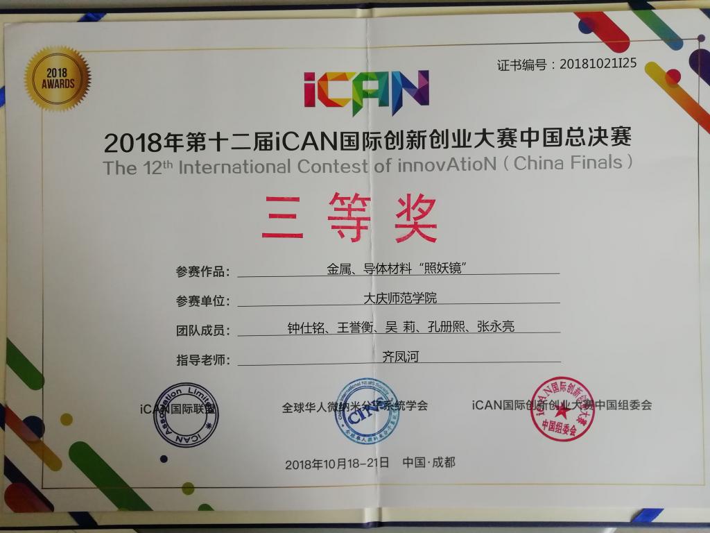 由iCAN国际联盟、北京大学、全球华人微纳米分子系统学会、教育部创新方法教学指导委员会联合主办的第十届iCAN国际创新创业大赛中国总决赛于2018年10月18日-21日在四川成都举行。经过全国450支老员工参赛队的激烈角逐,代表公司参赛的bevictor伟德官网代表队的作品“金属半导体材料照妖镜”获得了中国赛区三等奖。