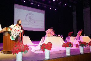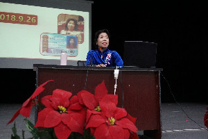 赵桂英书记用了150分钟,239页PPT课件,从“优秀传统文化根脉”、“爱民敬民核心价值”、“齐家治国核心价值”、“勤勉笃行实现梦想”四大主题展开讲述。引用增广贤文中的“观今宜鉴古,无古不成今”,启示同学们应持续攻坚克难,鉴往知来,坚定理想信念。“苔花如米小,也学牡丹开”启示同学们要有坚韧不拔的意志力。赵桂英书记还用王进喜铁人事迹及习近平总书记的心路历程来告诉同学们要善始善终,善作善成。最后,赵桂英书记与同学们一起用歌声将经典永流传。