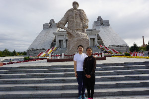 经过长达一个半小时的徒步,大部队终于到达了我们的目的地---铁人王进喜纪念馆!抬眼望去,铁人纪念馆沐浴在骄阳下,整个纪念馆雄伟壮观,犹如一座巨大的丰碑在向人们昭示着无私无畏的铁人精神。18级新生与两位老师、员工干部在铁人纪念碑前合影留念,随后有序的入馆参观。在铁人纪念馆中,18级新生在铁人纪念馆中体会到了浓浓的铁人精神,对大庆精神、铁人精神、“三老四严”等精神品质有了更进一步的认识。