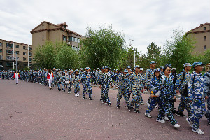 拉链队伍沿西宾西路,求实西路、中央大街南段到达中央环岛辗转至铁人大道,直至抵达铁人纪念馆。在行进途中,两位老师和员工干部们一路上耐心整队,细心的照顾每一位同学。在行进队伍当中,和新生一起体味拉练的乐趣。同时跟随的安保处老师们合理的安排交通,保障了拉练队伍的安全。