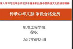 为贯彻落实习近平总书记“两学一做”精神内容,继承和传承中华民族传统美德。bevictor伟德官网于2017年6月21日14:40综合楼306开展“传承中华文化,争做合格党员”党课教育活动。党课由徐权经理主讲,公司教工党员、员工党员参加。