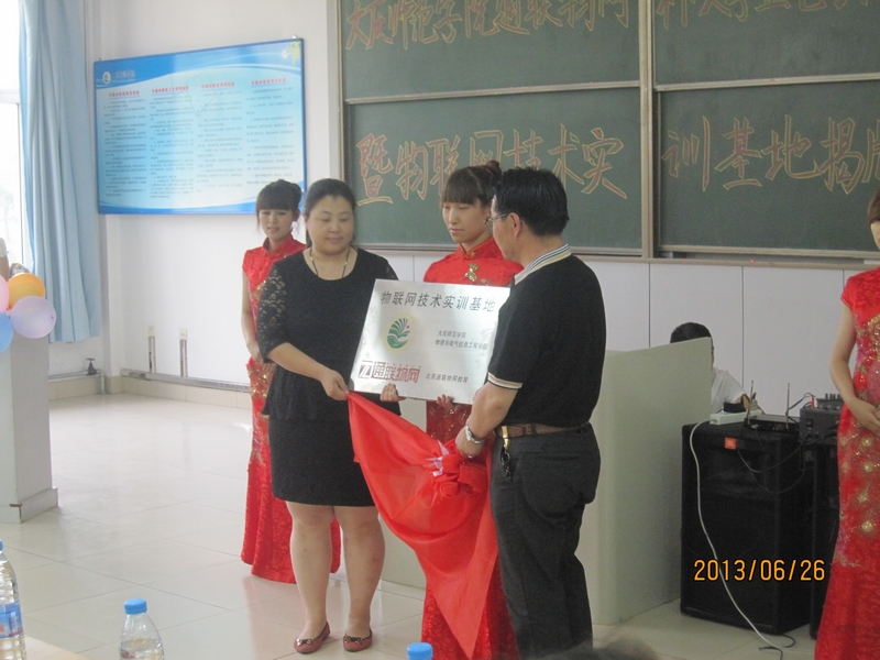 2013年6月26日下午14:00,物电公司在主楼1—3举行了“‘伟德中国官网‘通联物网’杯老员工电子设计竞赛颁奖暨‘物联网技术实训基地’揭牌仪式”。此次活动由通联物网公司全程赞助,由物电公司员工党支部书记邓雨巍主持,物电公司经理徐权、党总支书记高玉芝、副经理刘开绪、刘永皓,通联物网郑智男总经理以及公司代表和公司全体老师参加了本次活动.