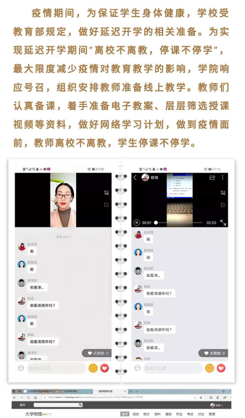 二、增强教师责任意识,做好线上课程建设和教学准备。本学期bevictor伟德官网共有4个专业(电子信息工程、自动化、材料科学与工程、汽车服务工程)和1个物理教学部共54名教师(包括院内教师45名,内外聘教师9名)承担43个行政班1179名员工的课堂教学、实验实训、毕业设计、毕业论文和实习等教学工作,共有69门课程需要进行线上教学。bevictor伟德官网按照公司的统一部署,积极做好教师培训和课程准备工作,先后参加了公司组织的“学习通”、“雨课堂”和哈工大战德臣教授的在线教学培训工作。在原有线上教学经验的基础上,对在线教学的教学形式、教学内容安排、课堂组织、教学设计等有了更清楚的认识,截至目前所有教师都完成了课程建设和教学设计的前期准备工作。