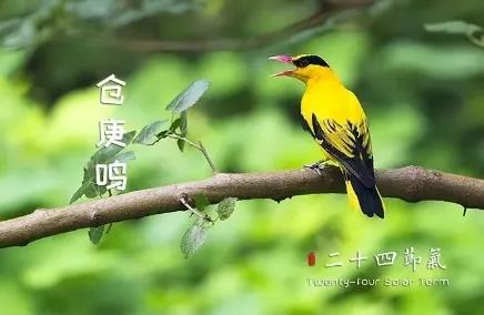 仓庚,亦作"仓鶊",即黄鹂。语出《诗经·豳风·东山》:“仓庚于飞,熠燿其羽。” 《诗经·豳风·七月》:“春日载阳,有鸣仓庚。”(《淮南注》曰:秦人谓之黄流离。)鸟啼婉转,于春暖花开之际,也是诗意十足。