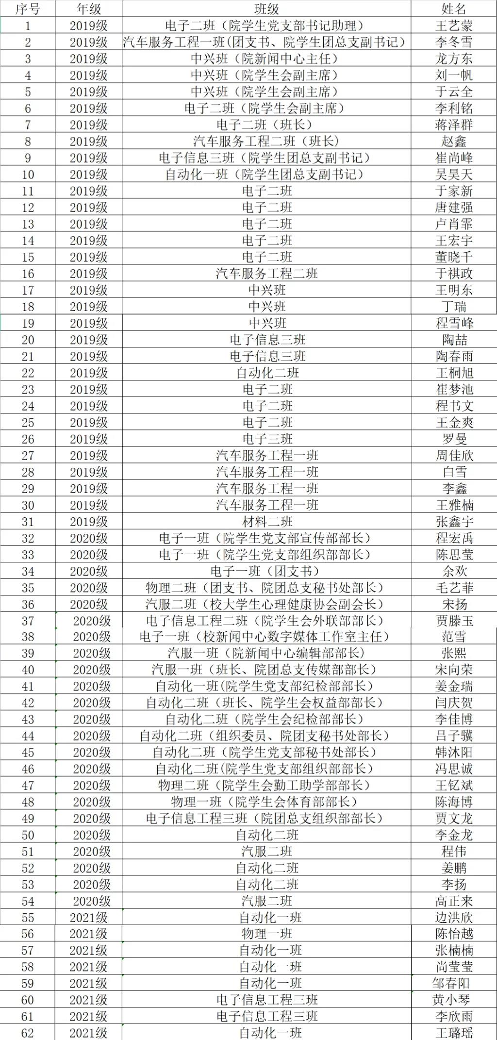 志愿者名单