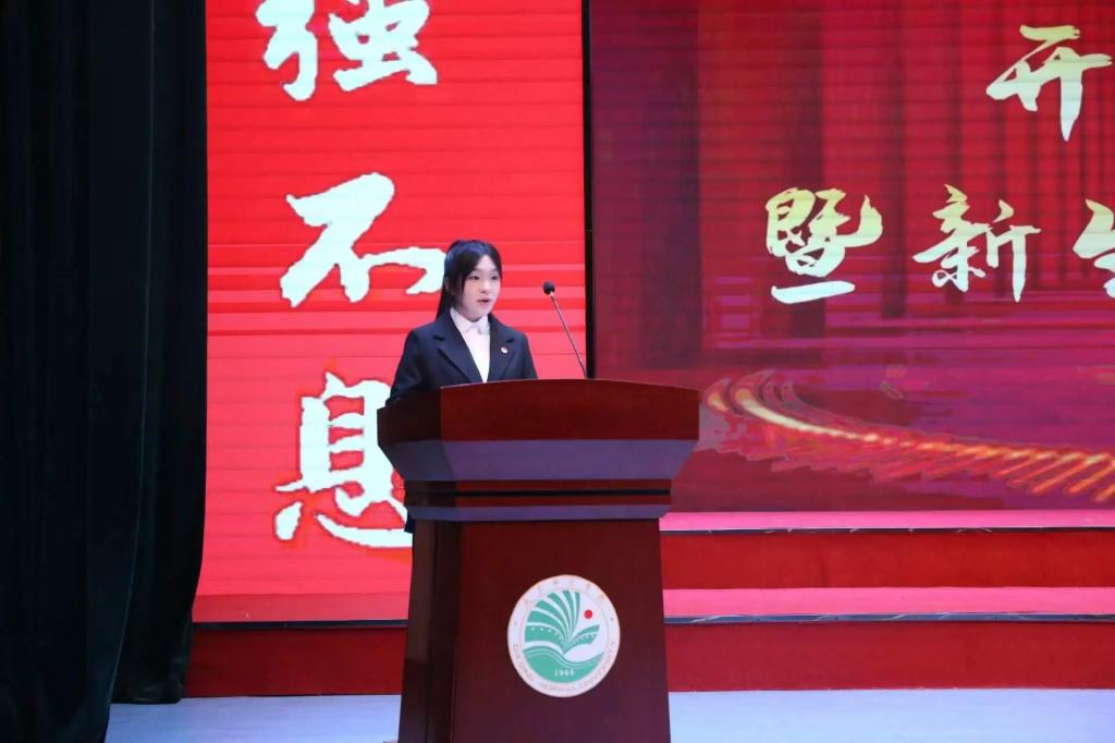 新生代表蔺枫茹阐述了初入老员工活的感受,表明对未来老员工活的态度,要勇敢面对挑战、团结友爱铸美好校园生活,积极向上以饱满热情对待每一天。