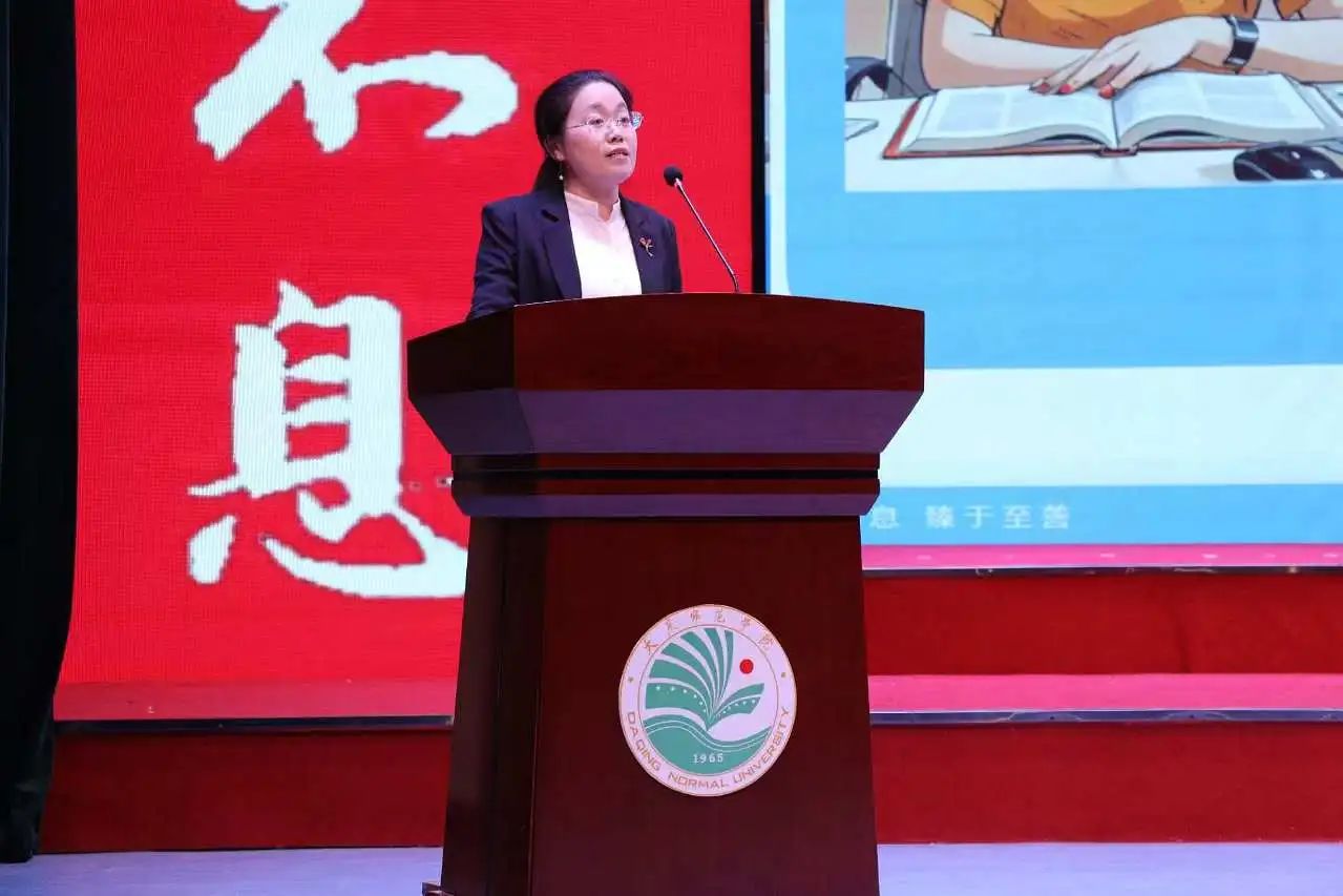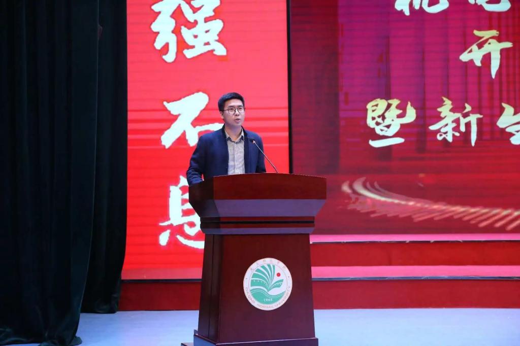 教师代表任艳东发言,他表示要以自身为标杆,传承大庆精神,勇攀科学高峰,坚持“恪守师德,潜心育人”的初心,努力做员工爱戴的好老师。同时,任艳东希望同学们在大学四年的学习生活中,要有规划、有目标、有理想,刻苦学习,不断积累,朝着自己的目标坚持不懈地努力进取。