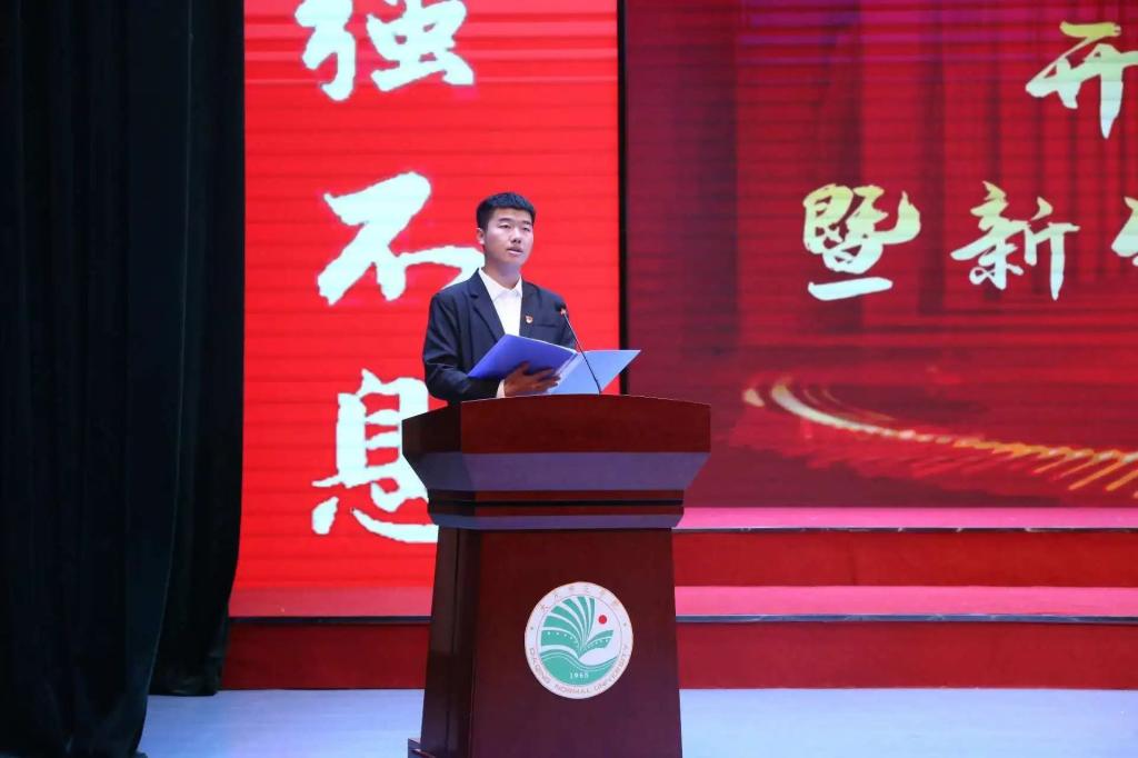 在校生代表李镔翰发言,分享了自身两年多的学习心得与员工组织工作经历,鼓励新同学以积极心态把握机会、珍惜时间、不断提升自己,为新同学开启老员工活助力。