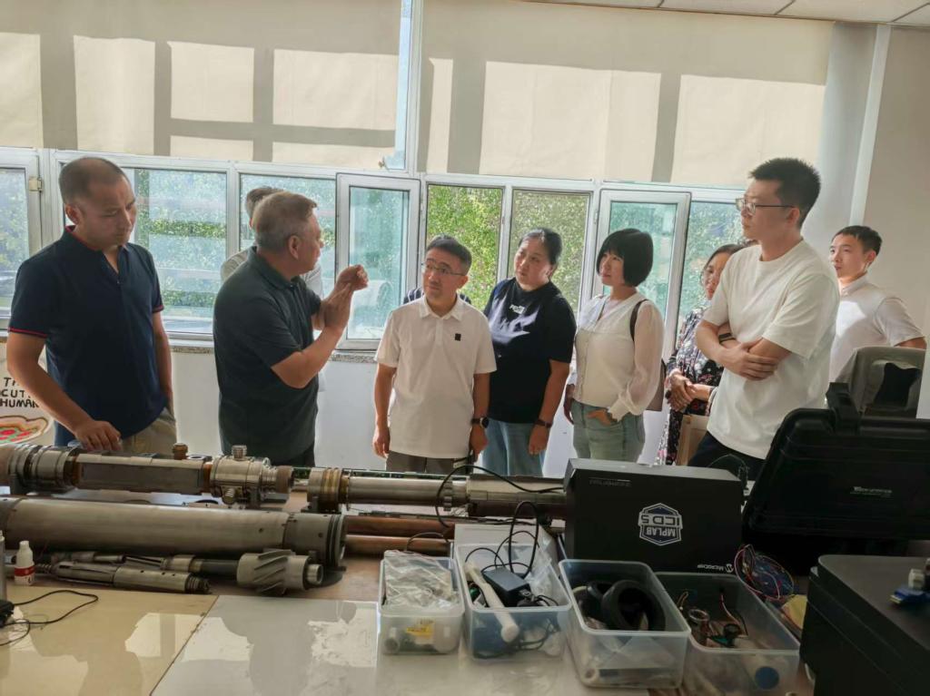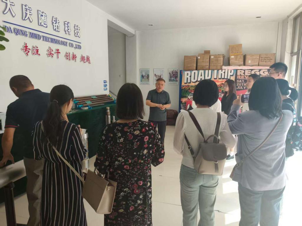 在大庆随钻科技有限公司,总经理刘江及技术专家团队热情接待了公司团队一行,刘总简要介绍了公司的基本情况,并着重阐述了公司的发展现状和技术优势领域。团队一行深入随钻科技研发实验室,实地观摩了随钻测量、定向钻进等先进装备的研发过程,详细了解了当前油田钻探技术的前沿需求与实际应用中的技术瓶颈。