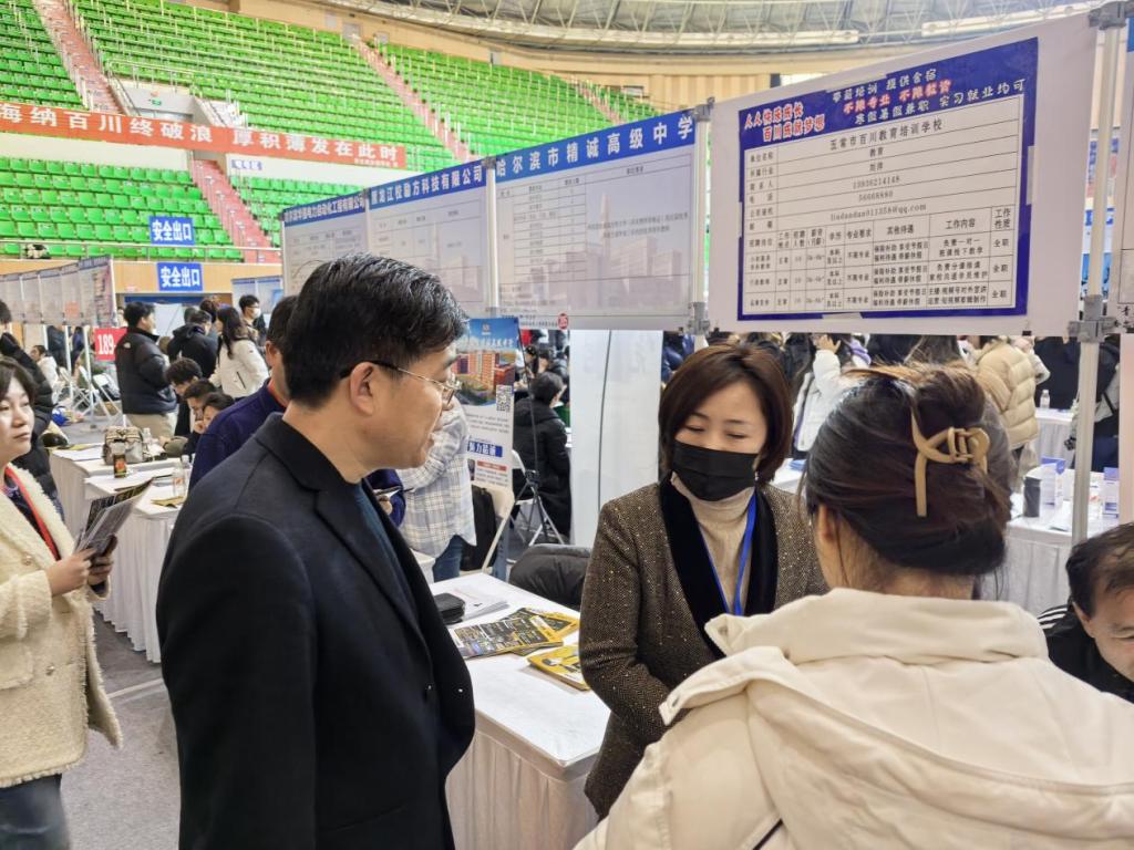在招聘会现场,董云峰副书记和张为超老师穿梭于各个展位之间,与招聘单位的负责人进行了深入交流。详细了解了他们对机电工程相关专业人才的需求状况、技能要求以及行业发展趋势。董云峰副书记还特别关注了企业在人才培养、实习实践等方面的合作意向,积极为公司与企业之间的进一步合作寻找契合点,力求为员工们争取更多优质的实习与就业机会。