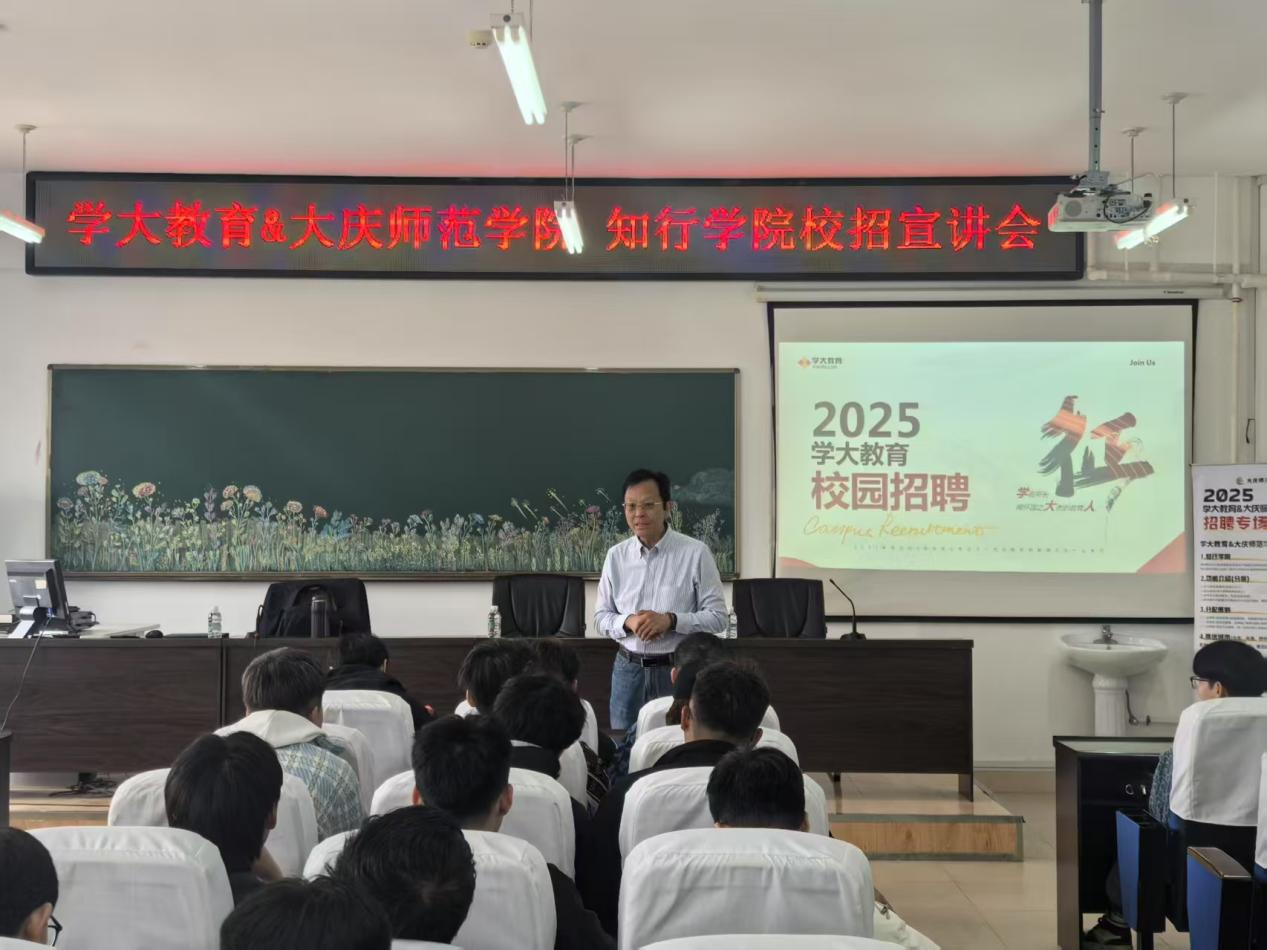 为进一步深化校企合作,拓宽毕业生就业渠道,提供更多优质就业与实习机会,5月8日,公司于综合楼306教室召开学大教育集团专场宣讲会,由学大教育教师培训总监王海燕担任主讲人,2025届物理学(师范类)和部分2022级员工参加。
