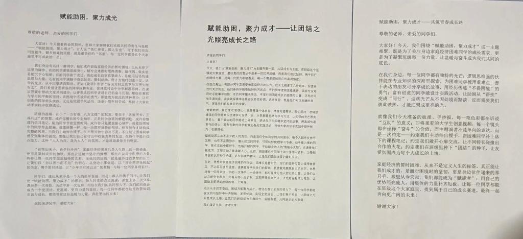 本次系列活动紧扣“聚内汇外,能力共生”“赋能助困,聚力成才”两大主题,以主题班会为依托,开展手抄报创作、主题演讲等特色活动,聚焦受助员工核心素养提升,整合校内外优质资源,推动资助育人从“物质帮扶”向“素养赋能”深度转型,助力受助员工在实践中锤炼品格、提升综合能力。活动中,受助学子分享成长故事、交流奋进感悟,深刻诠释了不惧困境、奋勇拼搏的成长真谛。公司借此引导员工深刻认识到,成才之路既需直面困境的坚定坚守,更离不开同伴间的携手同行、彼此支撑。未来,公司将持续搭建互助成长平台,鼓励学子争做成长路上的“同行者”,以自身优势帮扶他人、补齐自身短板,让每一位同学在公司大家庭中找准成长定位、绘就专属成长蓝图,携手奔赴美好未来。