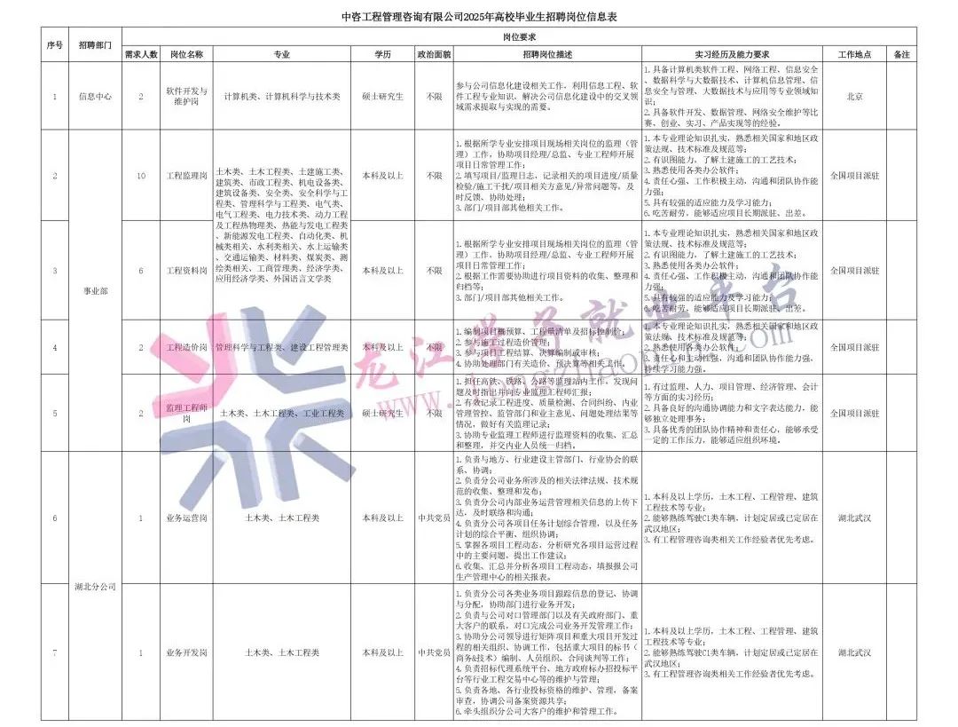 经过30余年的不懈努力,我们积累了丰富的工程管理经验,为各类工程建设项目保驾护航,“中咨管理”品牌成为行业的一面旗帜。我们崇尚简单、包容、共享的哲学理念,秉持创造价值、贡献社会的使命和专业创造精品、价值成就客户的核心价值观,为成为全过程工程管理咨询的领先者而奋斗。优秀的你值得更好的平台,加入我们,携手共创新篇章!