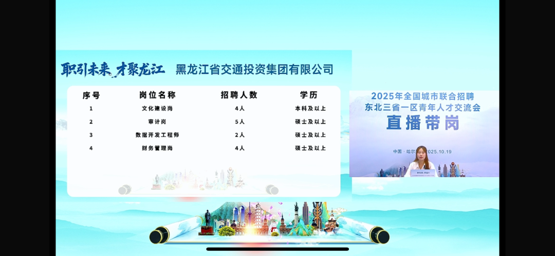 为促进2026届毕业生高质量就业,2025年10月19日上午,公司辅导员邵缨迪老师带领2026届毕业生赴哈尔滨会展中心参加“2025年全国城市联合招聘东北三省一区青年人才交流会”,本次招聘会采用“线下主会场+线上云展厅”双模式并行开展,汇聚优质用人单位近5000家,涵盖驻省中央企业、省属国有企业、专精特新企业,以及辽宁、吉林、内蒙古三省区的特色骨干企业,涵盖多个行业领域的大量优质岗位,提供岗位需求近10万个,重点覆盖装备制造、现代农业、冰雪经济、生物医药等东北优势产业领域。